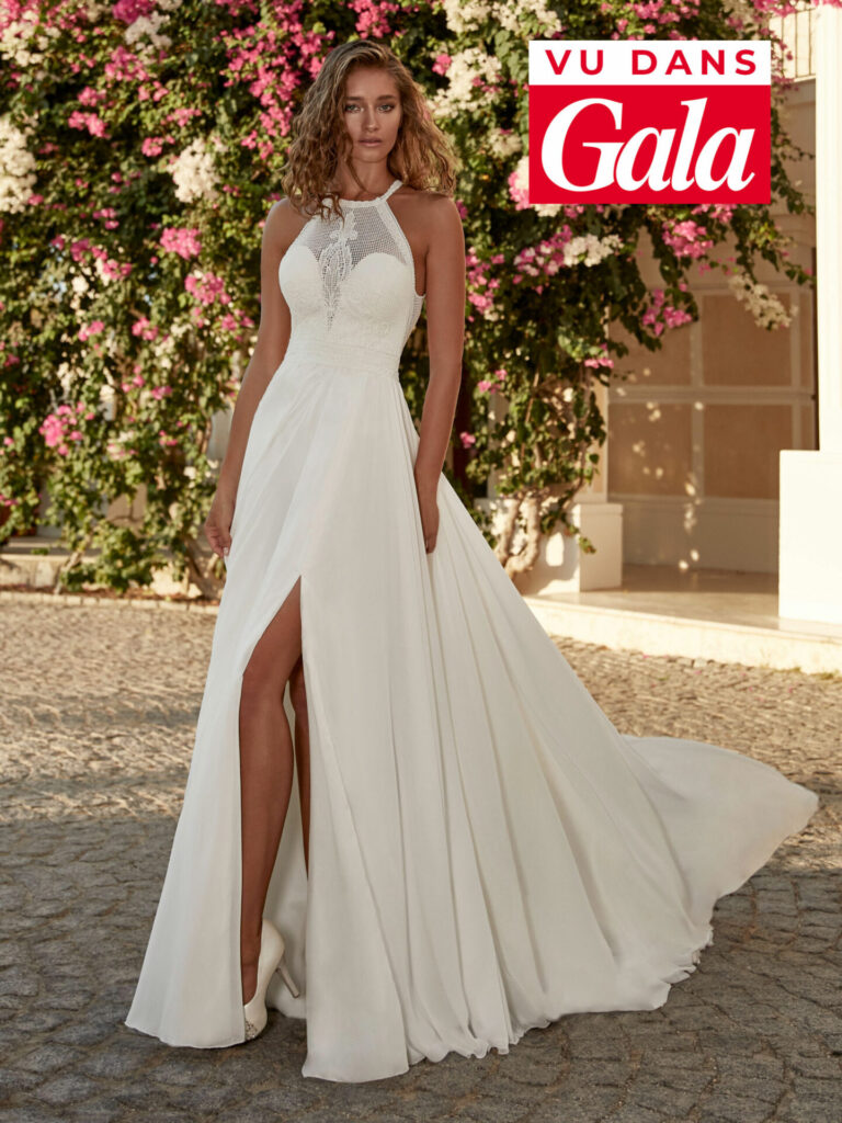 Robe de mariée GEMMA • Bohème • Dentelle • Dos nu • Fluide • Trapèze • Libelle 2022 La robe GEMMA de la Collection Libelle 2022...