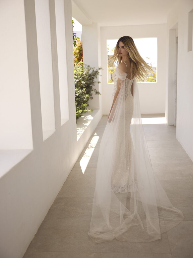 La robe de mariée bustier, avec son décolleté distinctif, offre une toile parfaite pour mettre en valeur vos bijoux de mariage. Le choix des bijoux dépend grandement du style de votre bustier et de l’effet recherché. Pour un bustier simple et élégant, un collier statement apportera une touche glamour – optez pour un collier ras-du-cou en cristaux ou perles qui épousera parfaitement la ligne du décolleté. Les sautoirs sont également très appréciés avec les robes bustier, créant une silhouette verticale allongée. Pour les boucles d’oreilles, privilégiez des pendants délicats si vous portez un collier important. Les bustiers ornés de strass ou de perles s’accorderont parfaitement avec des bijoux assortis, créant une harmonie visuelle. N’oubliez pas les bracelets : un bracelet manchette ou plusieurs bracelets fins apporteront une touche d’élégance supplémentaire à votre robe de mariée bustier. Le conseil essentiel est de ne pas surcharger : si votre bustier est déjà très travaillé, optez pour des bijoux plus discrets. À l’inverse, un bustier minimaliste vous permettra d’oser des pièces plus imposantes.
