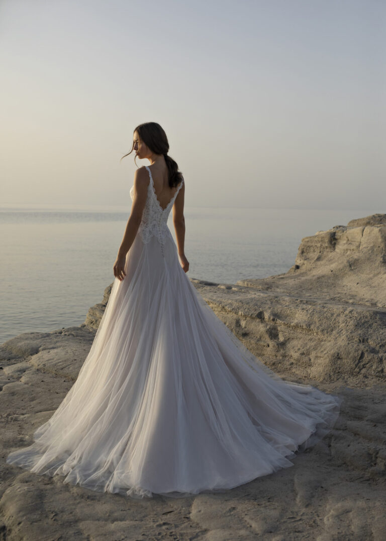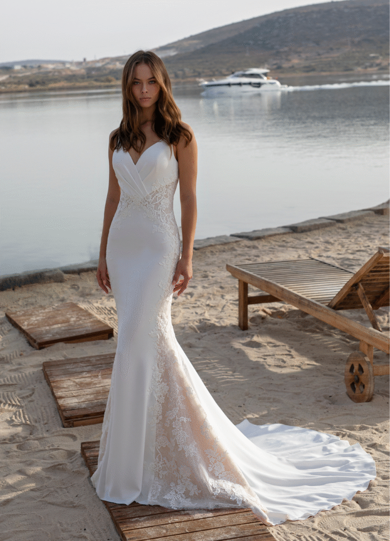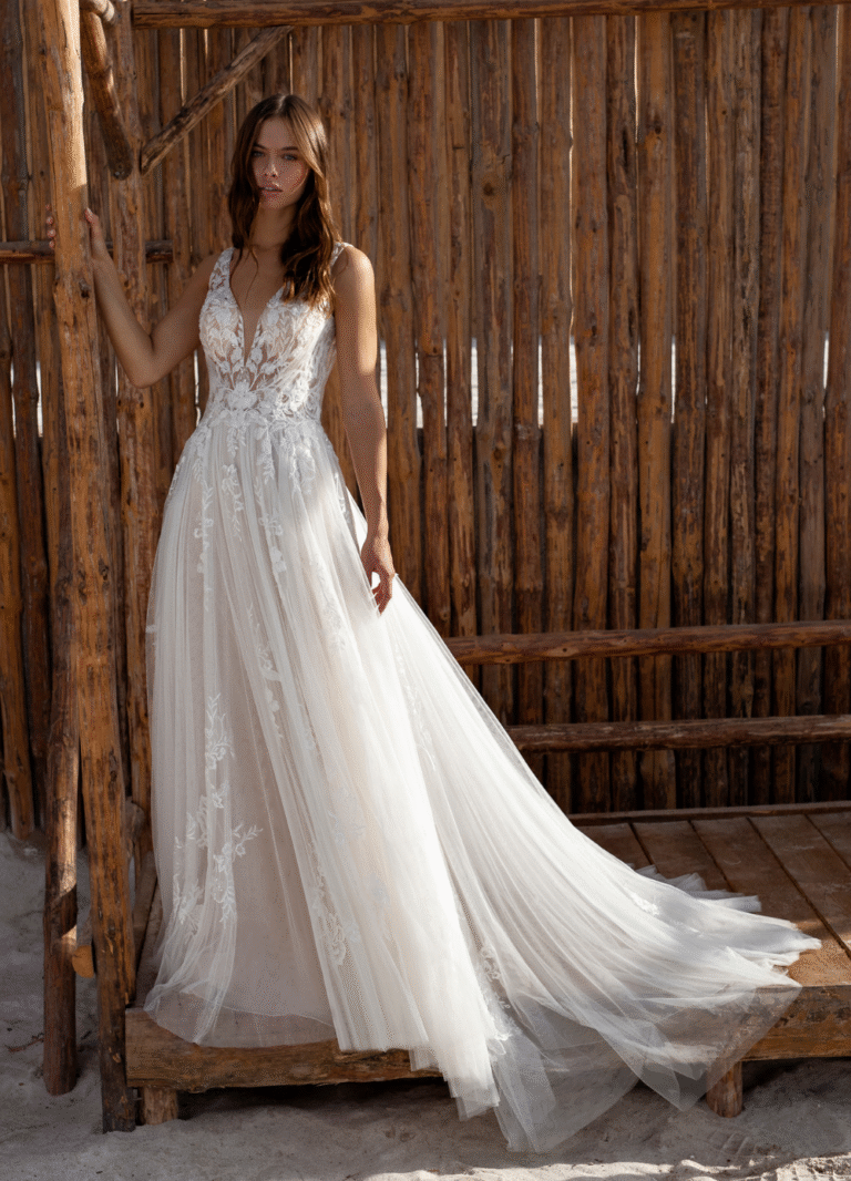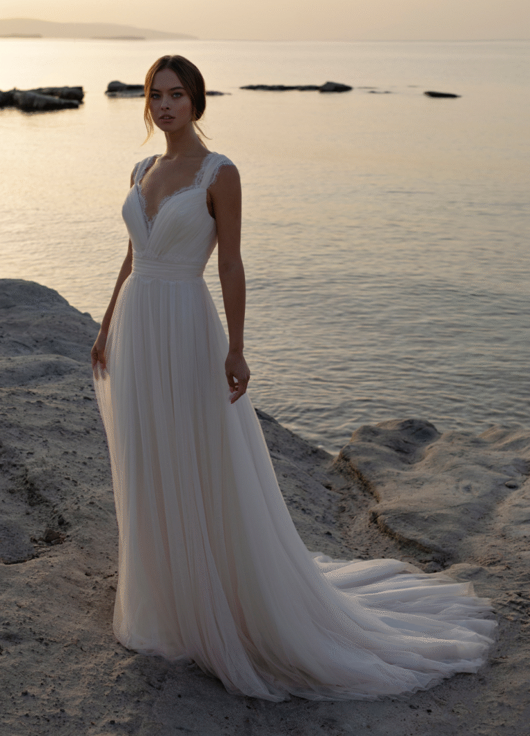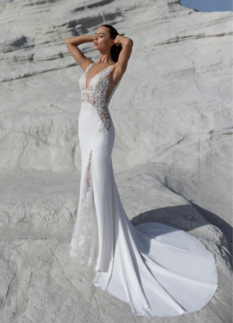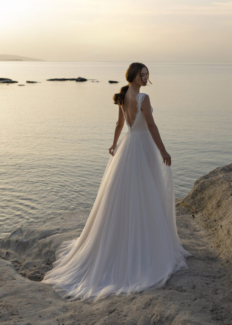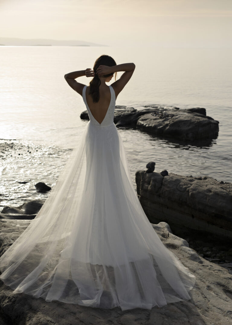 Robe de mariée sirène fluide en dentelle avec dos nu – Onora Une robe simple, fluide et pleine d’allure La robe de mariée Onora,...
