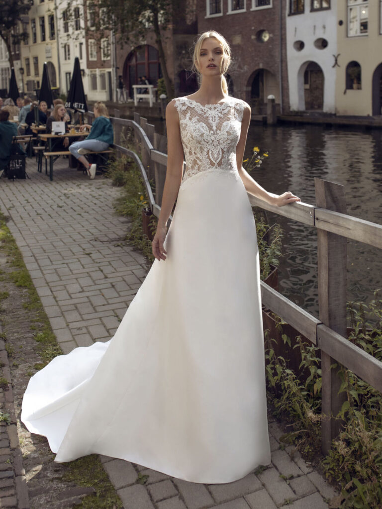 Robe de mariée Kensington – Modeca 2021 Romantisme et légèreté en toute modernité La robe de mariée Kensington séduit par sa cou...