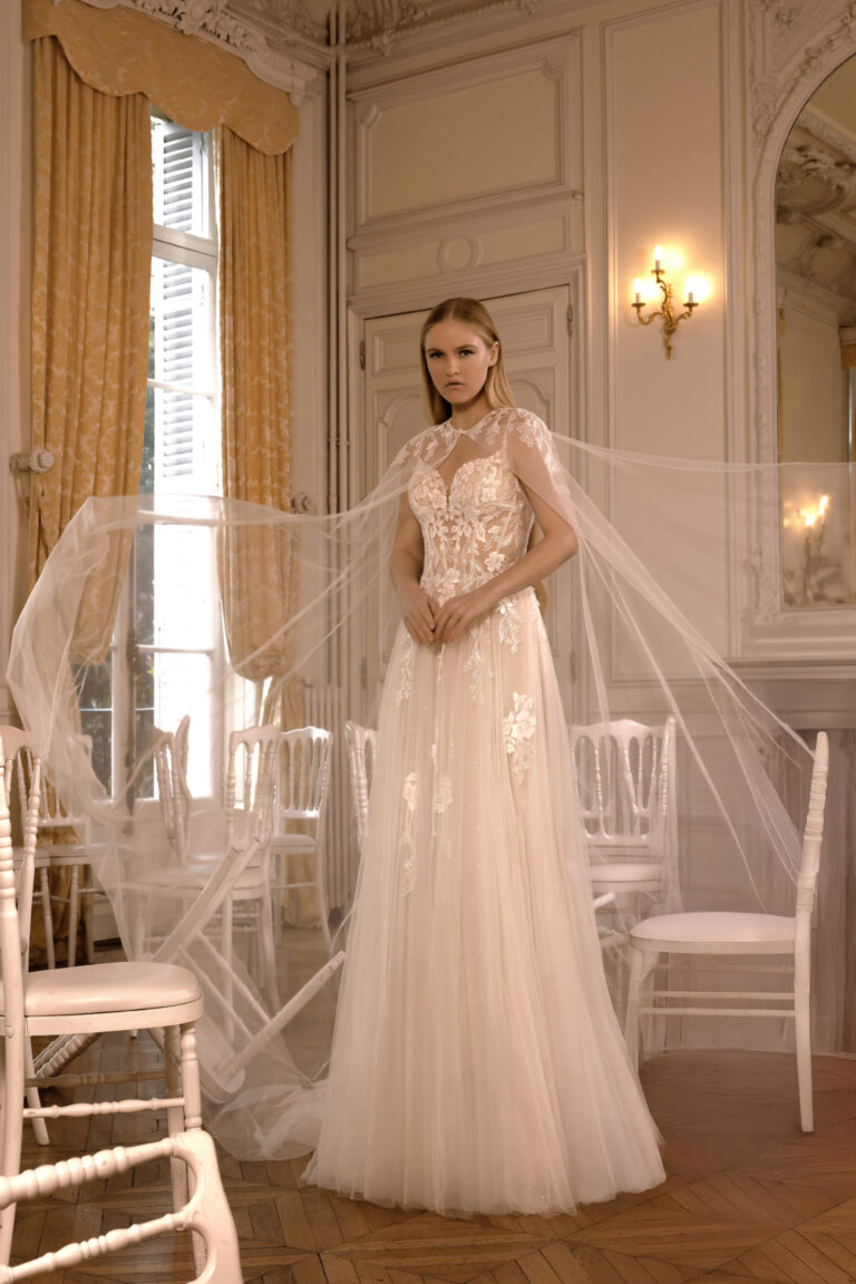 La collection comprend des robes sirène, princesses, bohèmes et minimalistes. Vous y trouverez aussi bien des bustiers classiques que des modèles à manches longues en dentelle, très tendance en 2026.