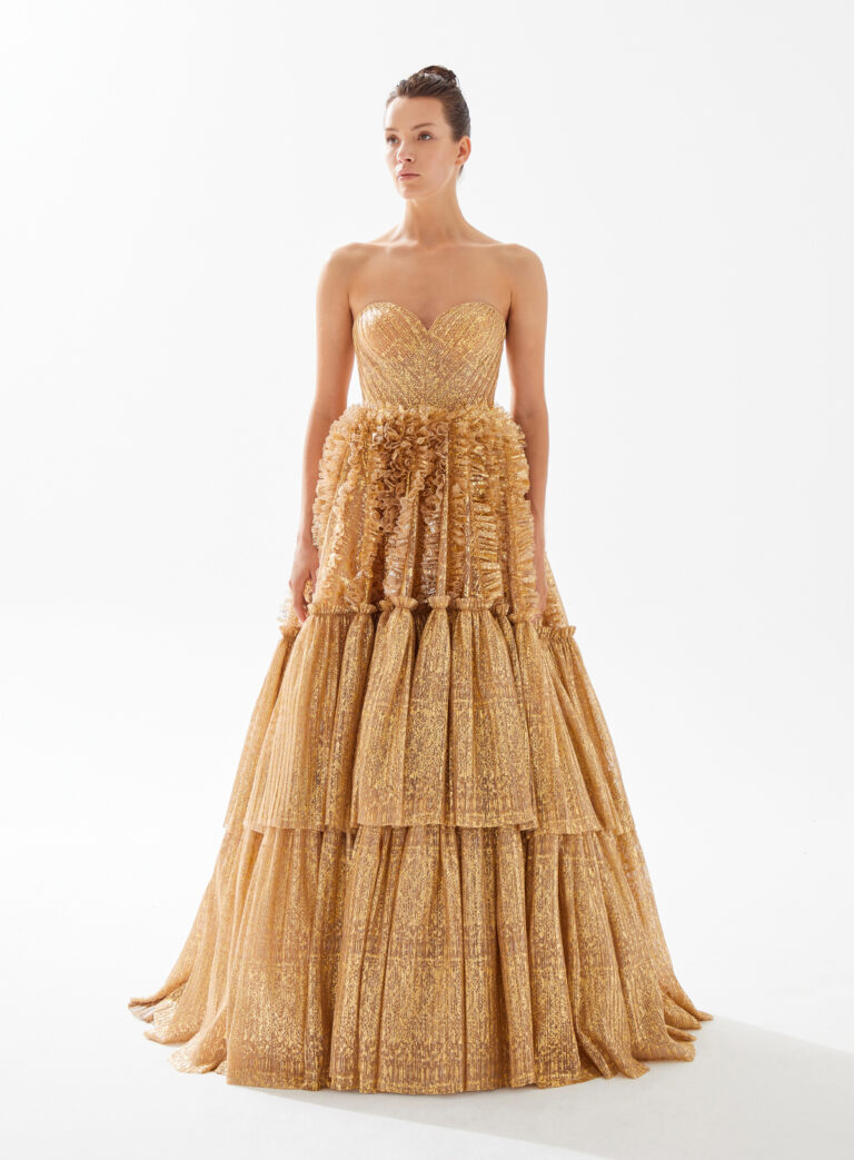 Collection Tarik Ediz - Robe de soirée REF 98083 Disponible en : Gold