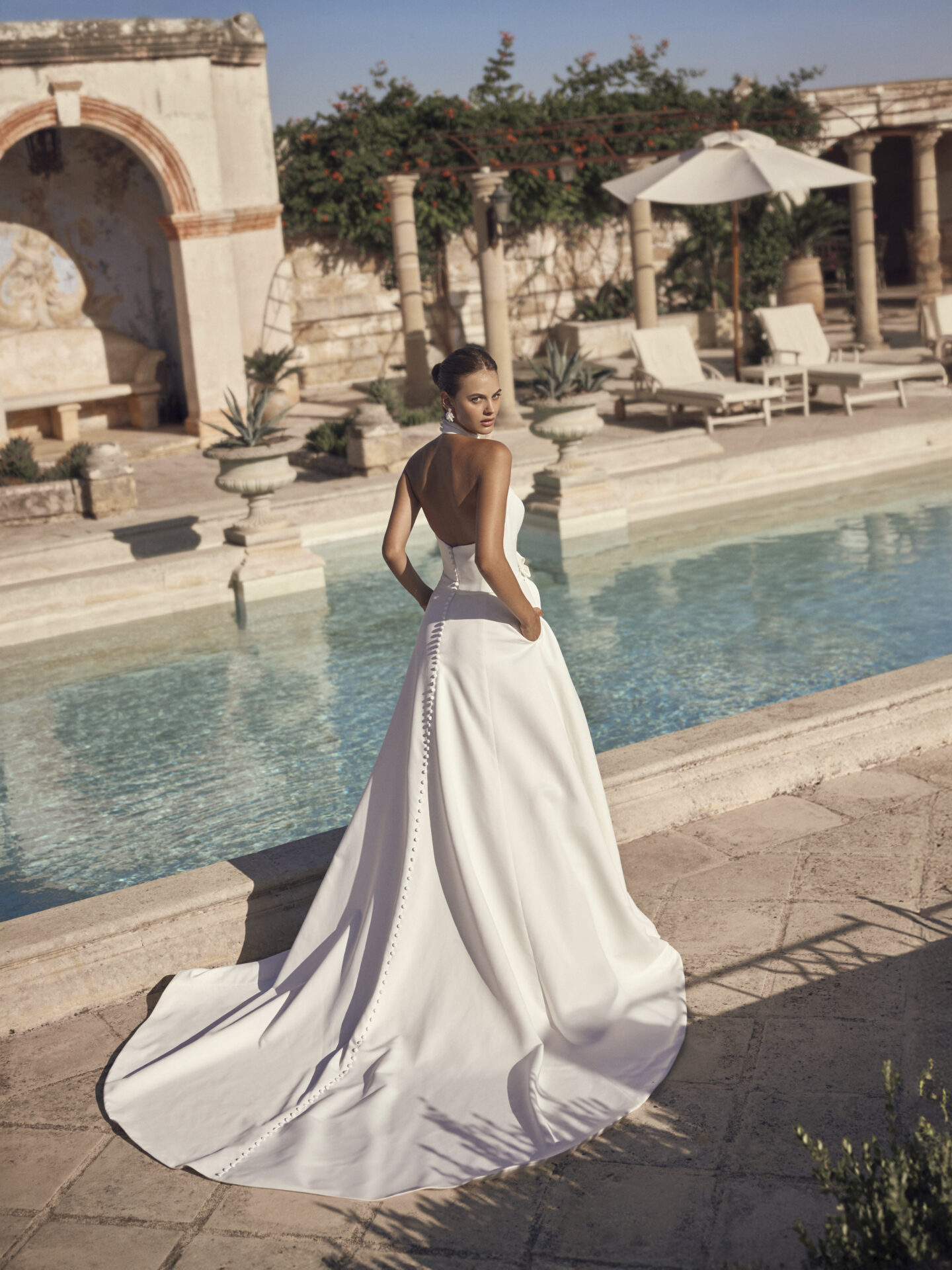 La robe de mariée Marvina de la collection Modeca 2027 est la robe de mariée en satin qu’il vous faut, elle a tout ce que les mariées recherche pour le plus beau jour de votre vie. L’ élégance est au rendez vous, l’encolure américaine va sublimer vos épaules , une ligne pure mais couture rend cette robe de mariée intemporelle et spectaculaire, vous pourrez profitez de chaque moment tout en mettant votre silhouette en valeur grâce a sa fente qui va dévoiler votre peau. La taille est bien marquée par une jolie ceinture et un nœud déstructuré alors que sa longue traîne avec des boutons va donner de la longueur.a votre silhouette.