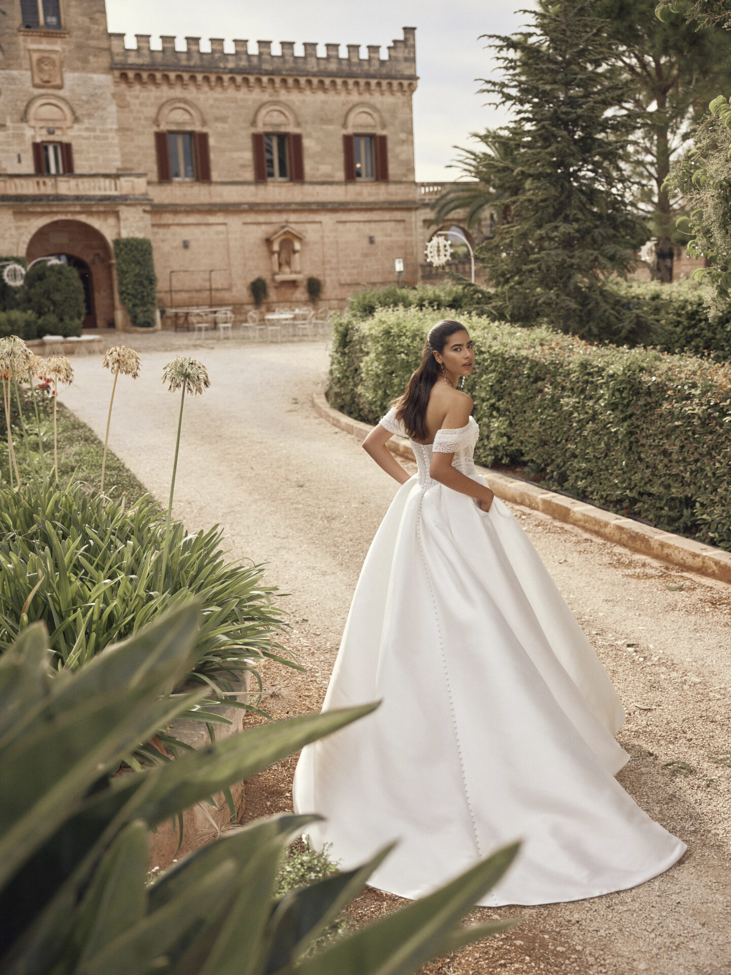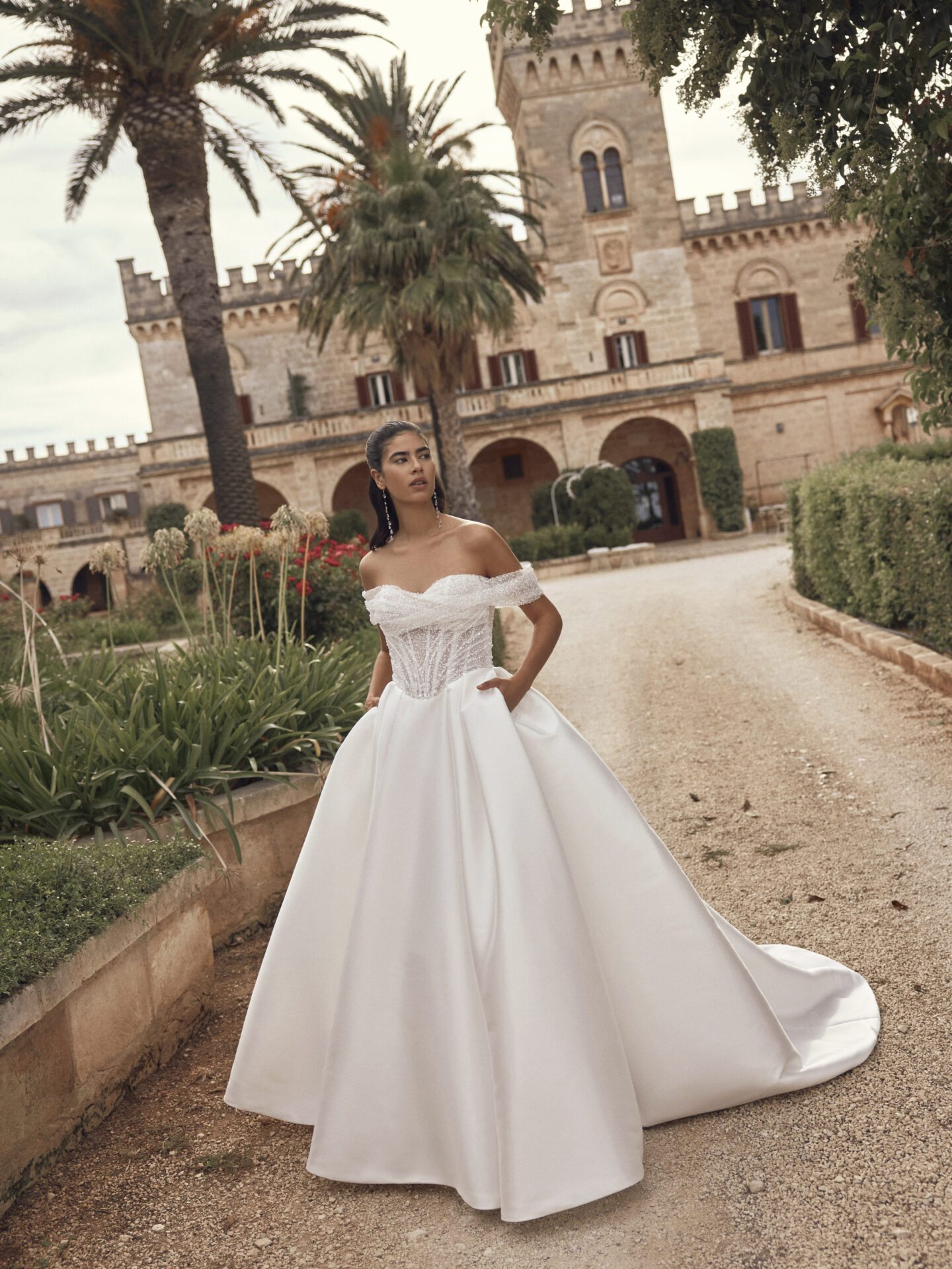 Robe de mariée princesse – Volume – Perles – Mikado – Moderne – Bretelles bateau – MODECA 2027