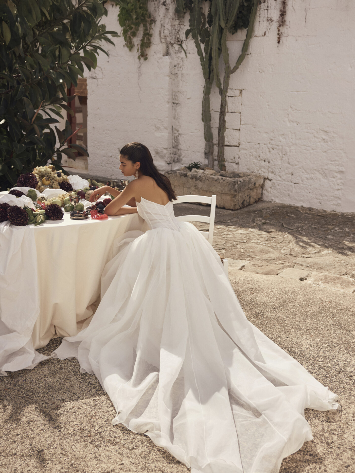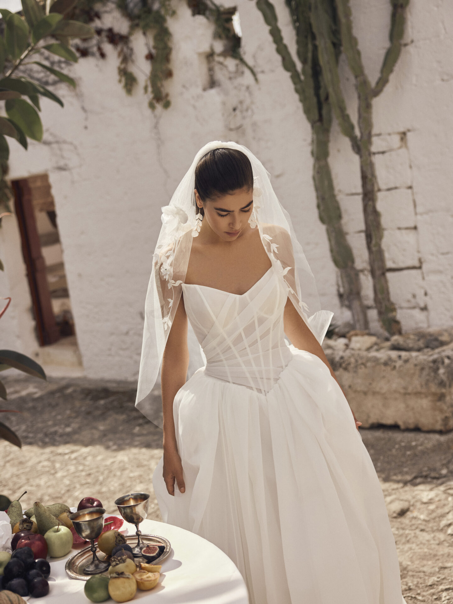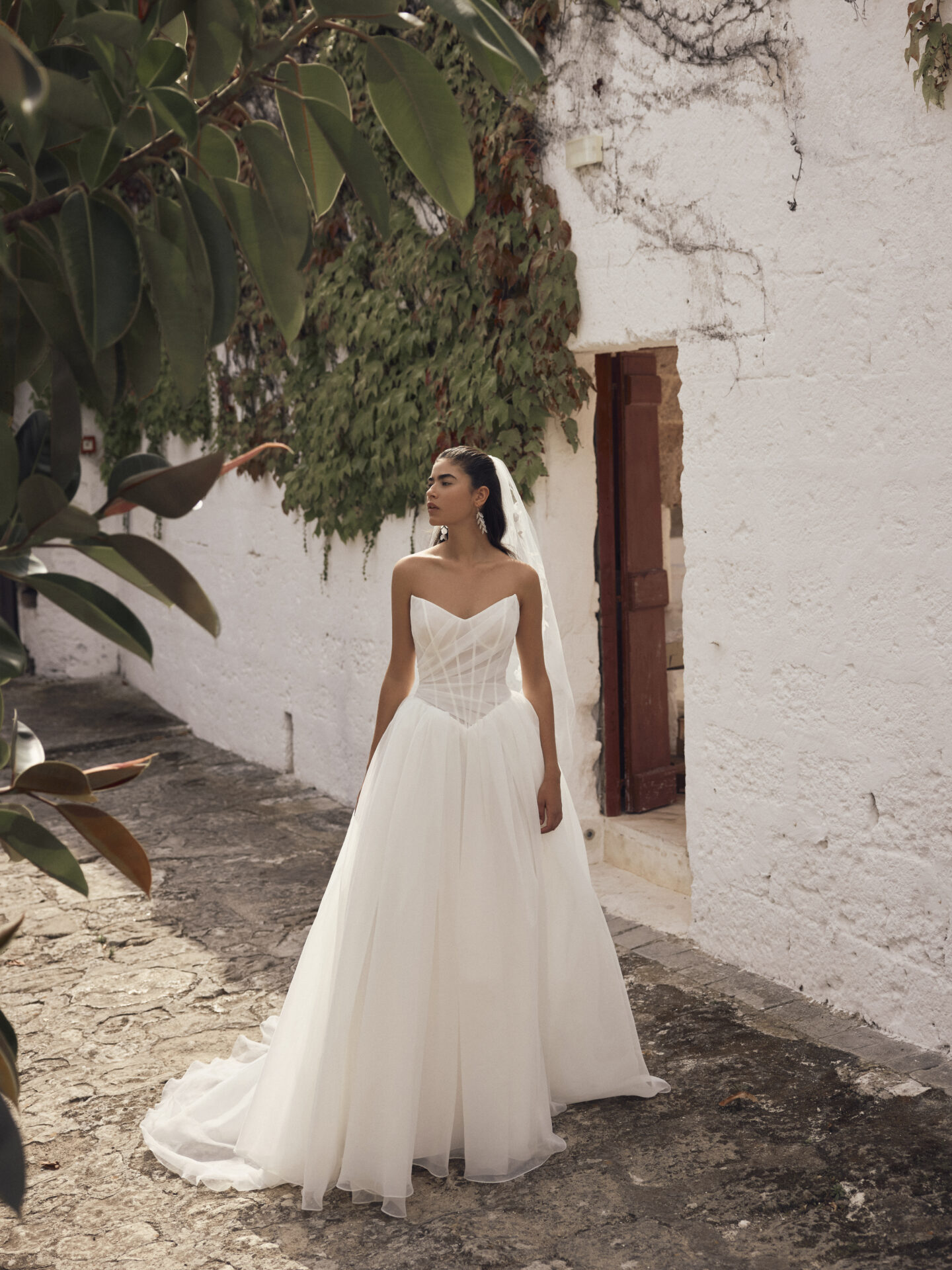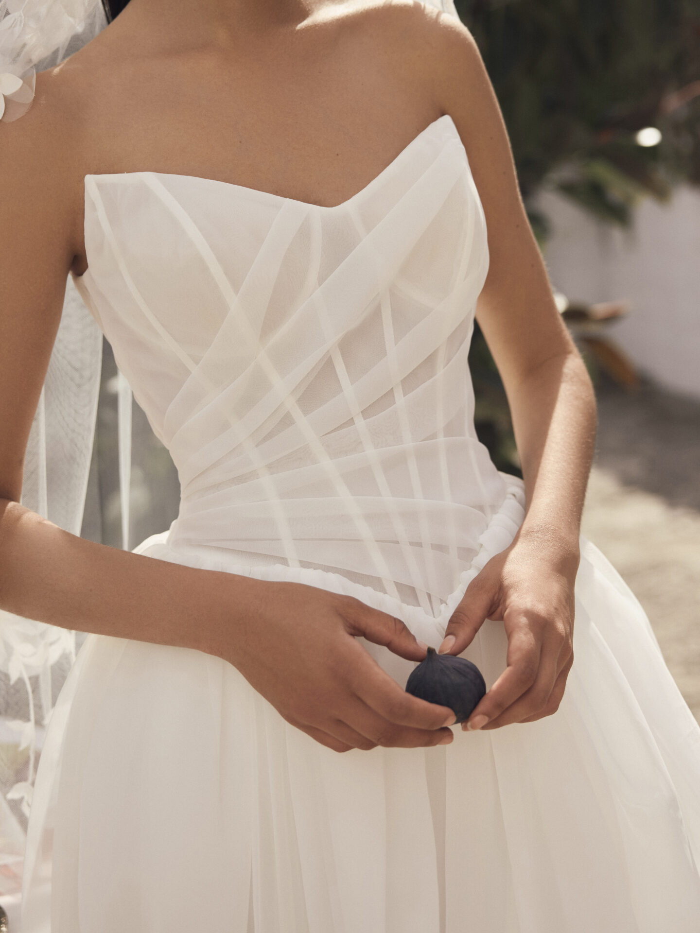 La robe de mariée Morgana de la collection Modeca 2027 est une superbe robe de bal avec un magnifique volume en organza qui respire l’élégance intemporelle avec une touche de modernité. Le corset est structuré et drapé avec des baleines apparentes en transparence, très ajusté façon corset. Les transparences de l’organza donne un cote glamour a cette de robe de mariée couture.et ajoute une touche de sophistication à cette silhouette spectaculaire.