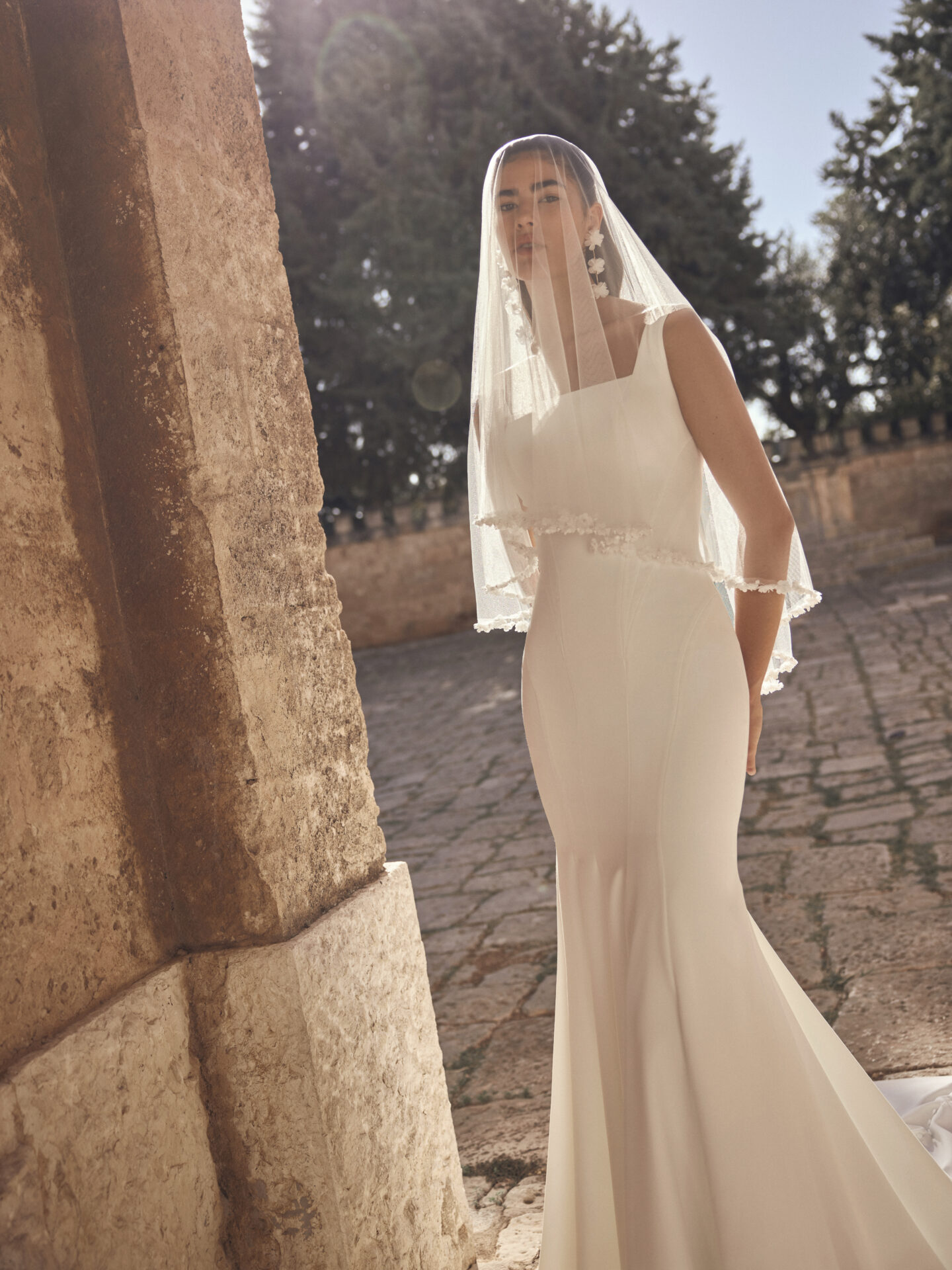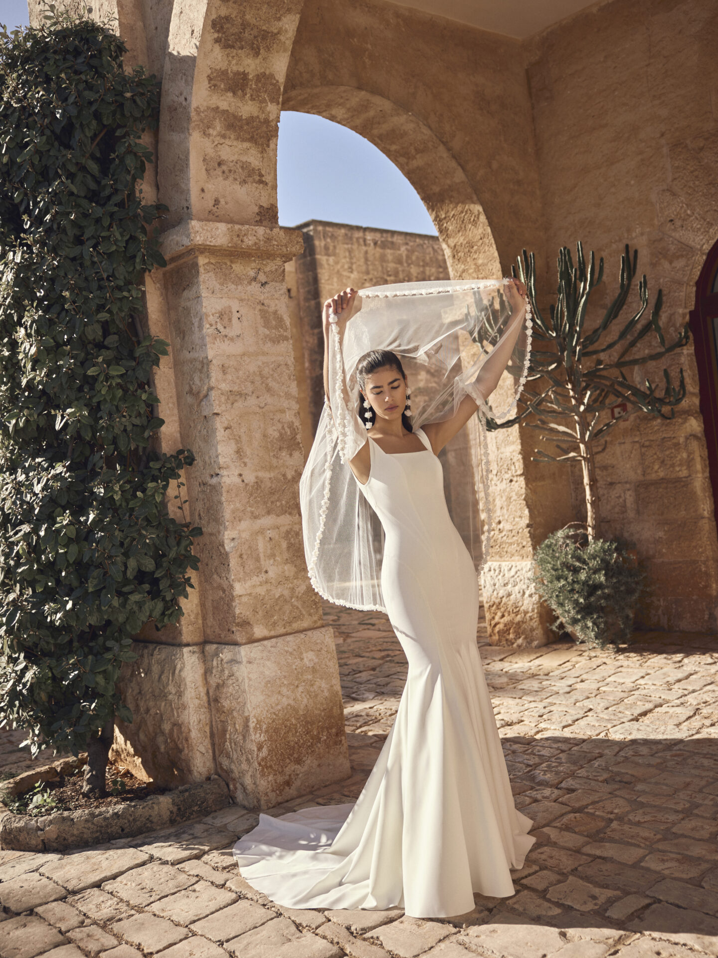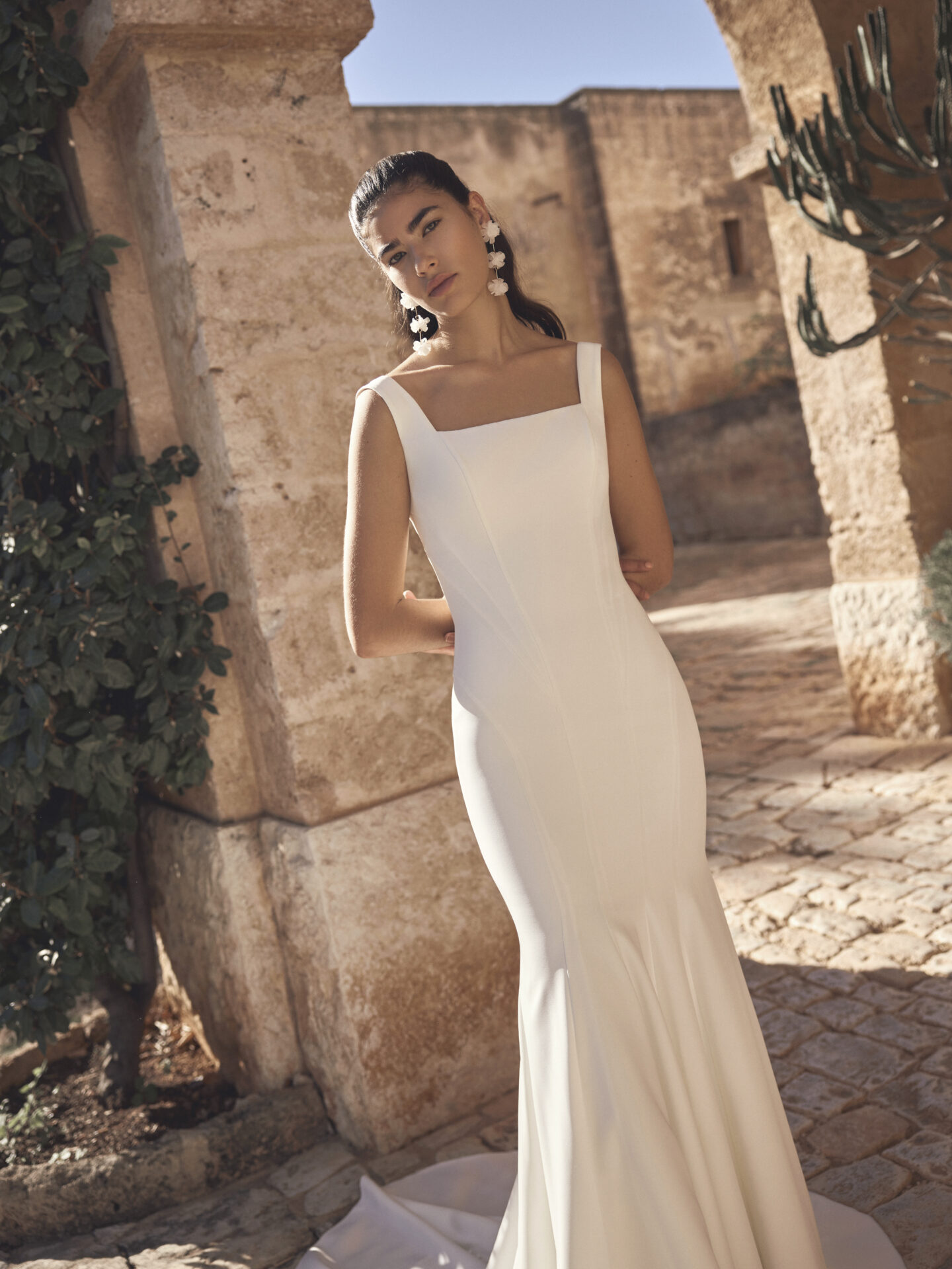 Robe de mariée sirène – Élégante – Crêpe – Bretelles – Moderne – MODECA 2027