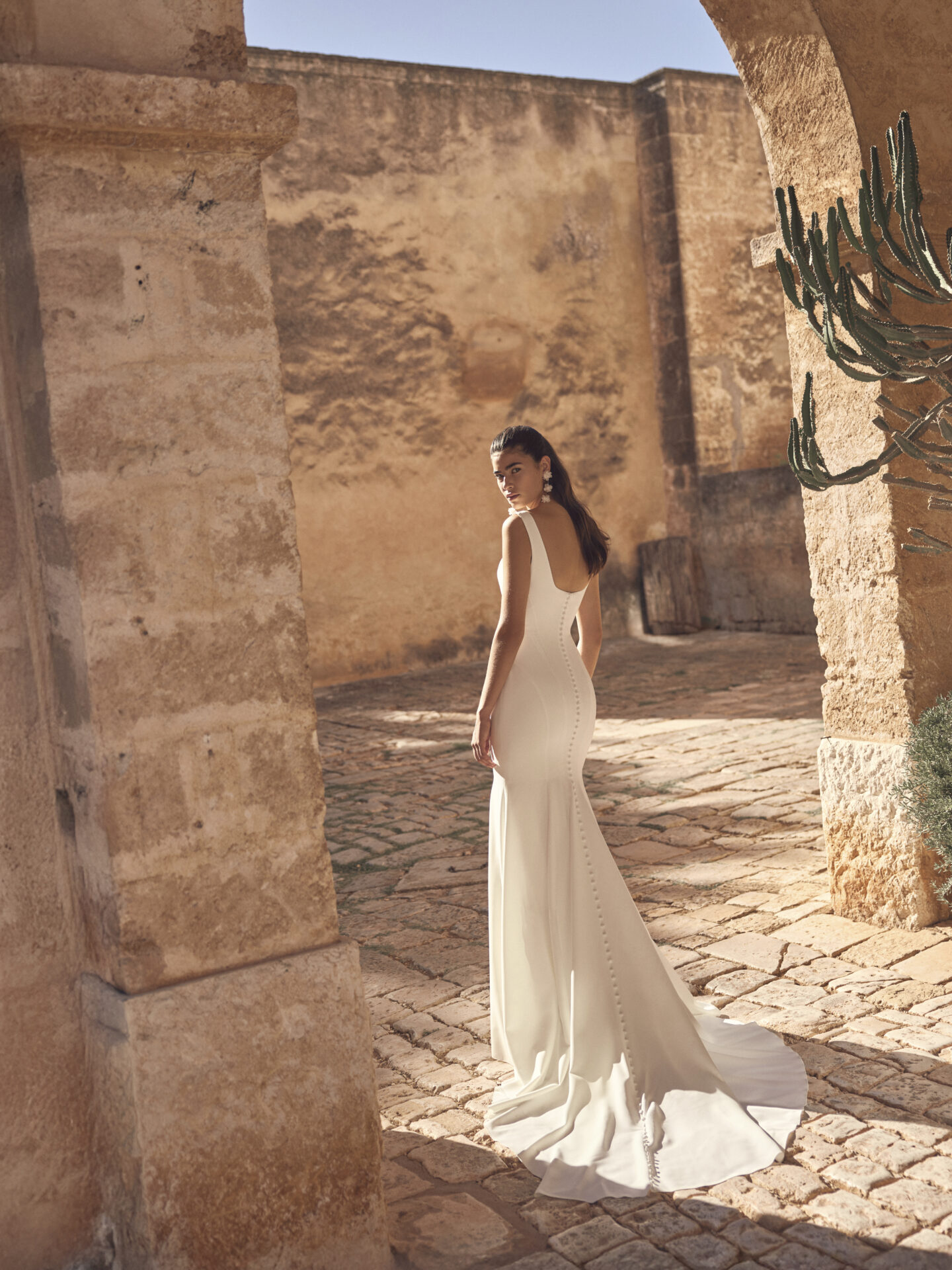 La robe de mariée Moriah de la collection Modeca 2027 est une superbe robe de mariée très couture, à la coupe ajustée, glamour, féminine est confectionnée en Crêpe. Robe de mariée a bretelles large. Sirène sobre avec des belles découpes, moderne et d’une élégance rare. Le dos est entièrement boutonnées sur toute la longueur, incroyablement originale.