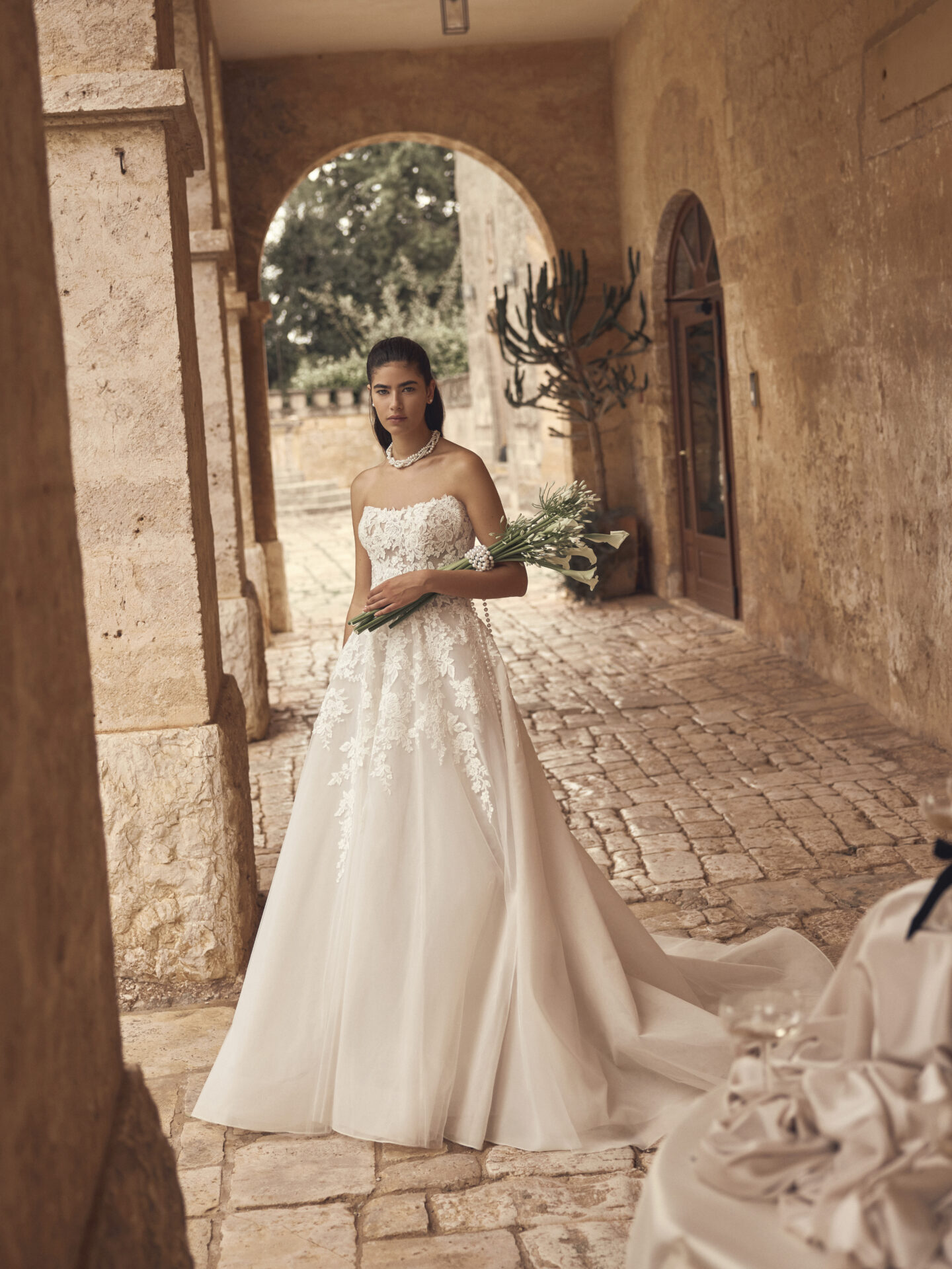 Robe de mariée A line – Organza – Trapeze -Dentelle – Bustier – MODECA 2027