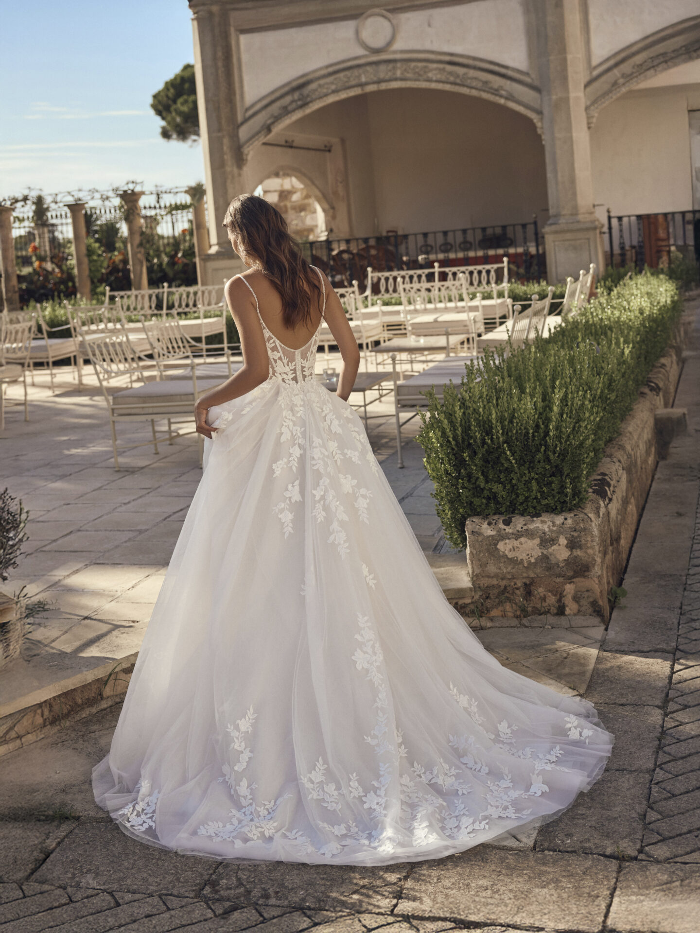 Robe de mariée fluide – Dos nu Élégante – Dentelle – Bretelles – MODECA 2027